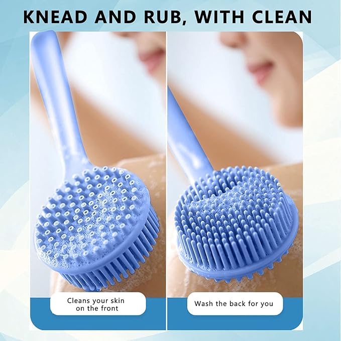 Generic - Bath Brush,Silicone Back Brush,Blue Round Head Long Handle Silicone Bath Body Scrubbing Brush,Long Brush Promote Circulation Deep Cleaning Exfoliating Shower Brush