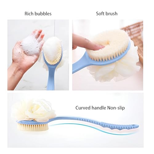 - This innovative bath brush features a double-sided design, there is a coarse side to effectively remove dead skin and a softer side for gentle massage and promote circulation. This ensures you get the most out of your exfoliating routine. By using both sides, you can customize your shower experience according to the needs of your skin, whether you need a deep cleansing or calming massage.