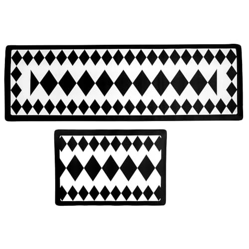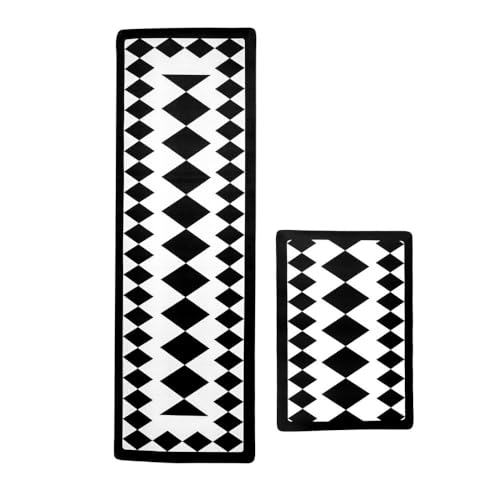 Generic - طقم سجادات أرضية حمام من قطعتين، سجادة أرضية مطاطية مضادة للانزلاق، سجاد فائق الامتصاص وسريع الجفاف، سجادة دش تناسب أسفل الباب وأمام حوض الاستحمام وغرفة الاستحمام (40 × 60/40 × 120 سم) أاسود/ أبيض)