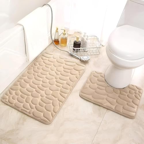 Generic - Bath Mat Non Slip Foam Bath Mat Designed for Bathroom and Shower Use Equipped with Soft Coral Fleece for High Absorbency, Washable, Perfect for Kitchen Use Also Beige