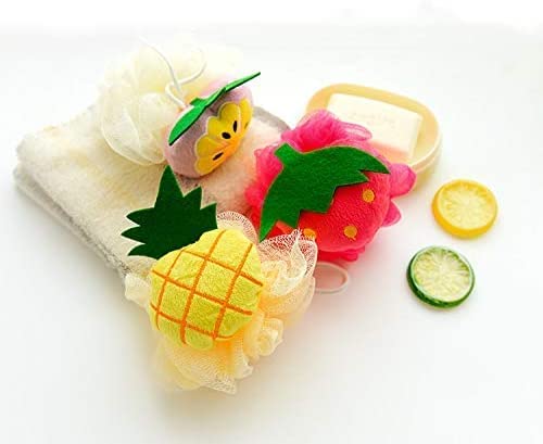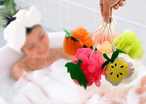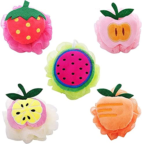 Spaceshoop - اسفنجة استحمام ناعمة من باث بوف - كرات استحمام فواكة، ليفة على شكل فاكهة (قطعة واحدة) متعددة الالوان