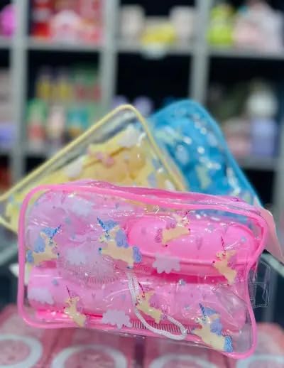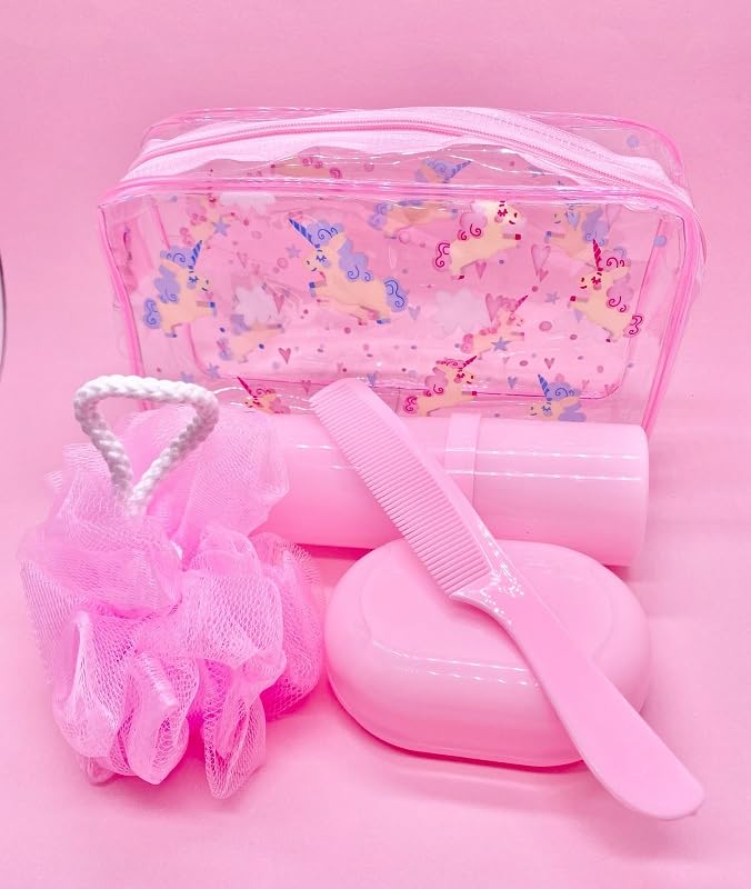 Generic - مجموعة هدايا الحمام والاستحمام - تتضمن مشط وطبق صابون وليفة وشنطة فرشاة في شنطة مريحة - مثالية للمنزل او السفر--- لون بينك ----- من رنا ستور