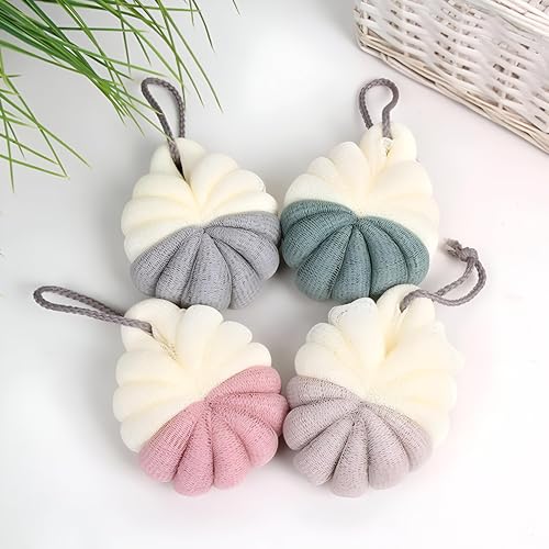 Generic - طقم إسفنجة استحمام على شكل كرات شبكية كبيرة وناعمة بتصميم متين وأشكال وردة أنيقة مصممة لتنظيف الجسم، 4 قطع، ألوان متعددة