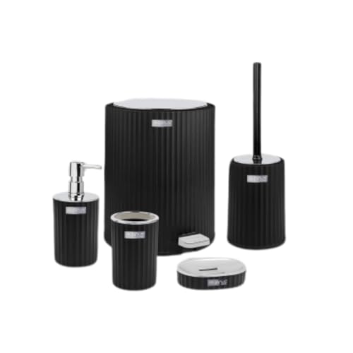 Generic - Bathroom Accessories Set - 5 Pcs Decor Bathroom Set (Coliseum) - Silver Frame - With Pedal Waste Bin