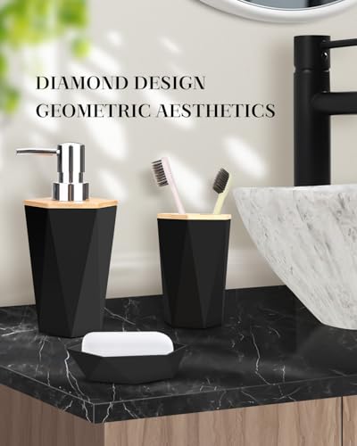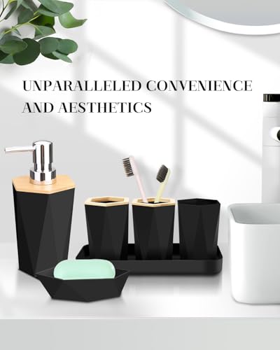 - 【Matte Black Geometric Design】: the unique matte black with geometric design adds a different touch of color and style to your bathroom, and the black bathroom set effortlessly enhances the aesthetics of your bathroom space while providing practicality