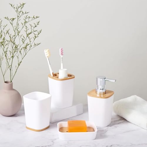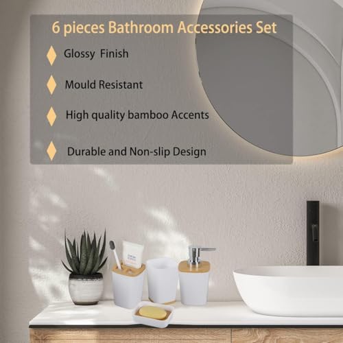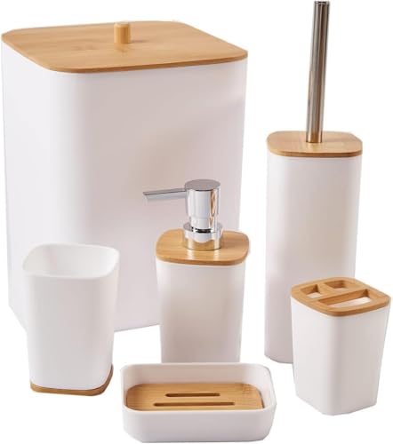 Generic - Bathroom Accessories Set of 6 PCS, Luxury Modern Bathroom Accessories Set, Black Toilet Accessories with Trash Can, Toothbrush Holder Cup, Soap Dish Holder, Soap Dispenser (White)