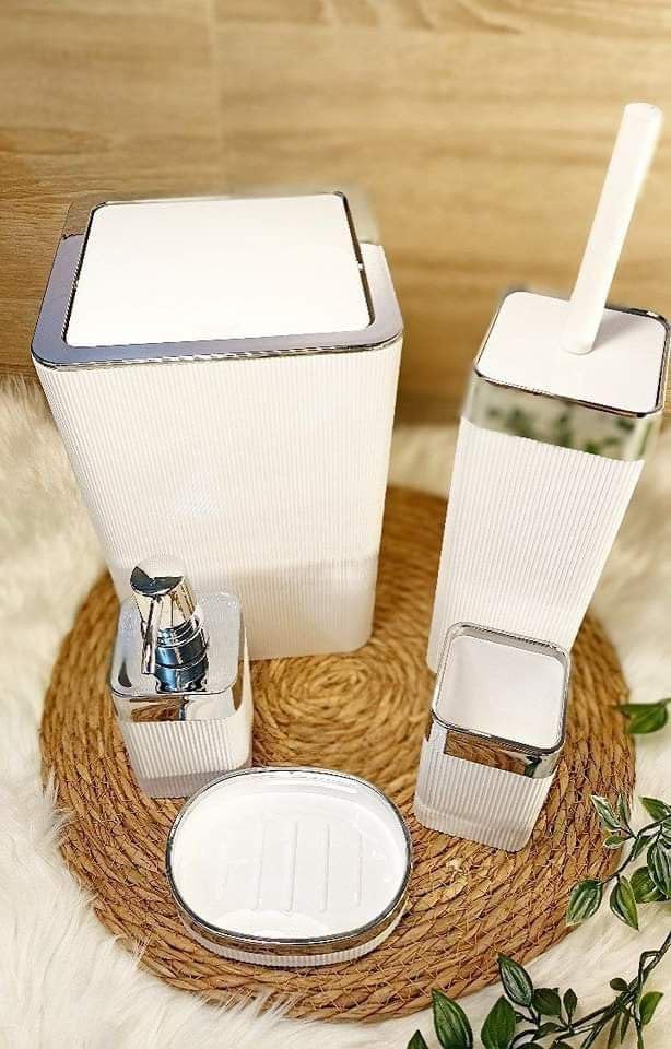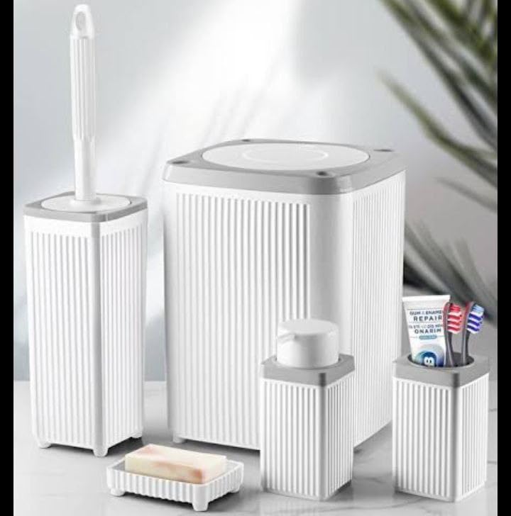 - Included components: Toilet Brush, Soap Dish, Toothbrush Holder