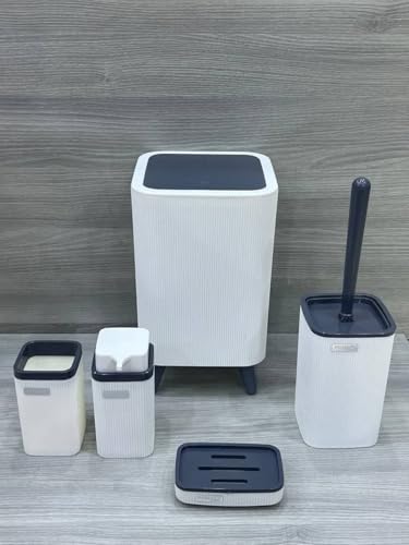 - COMPLETE 5 PIECE BATH SET: set includes a trash pin, toilet brush holder, tissue box, soap cup, and soap dish for total bathroom organization