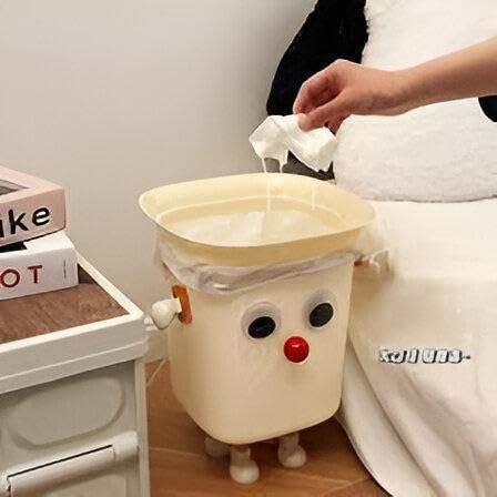 - This playful trash bin is designed with large eyes and big feet, transforming waste disposal into a fun and imaginative experience. It’s not just a bin; it becomes a cheerful companion that brightens up children’s rooms, kitchens, or bathrooms, making tidiness less of a chore and more of a lighthearted daily routine.