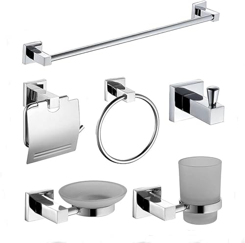 Generic - Bathroom Accessory Set 5 Pieces Square Brushes Nickel
