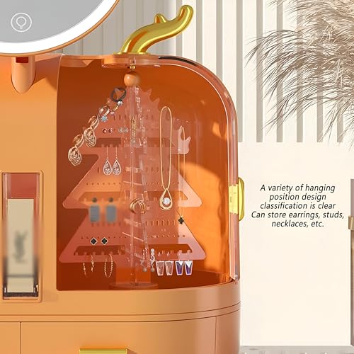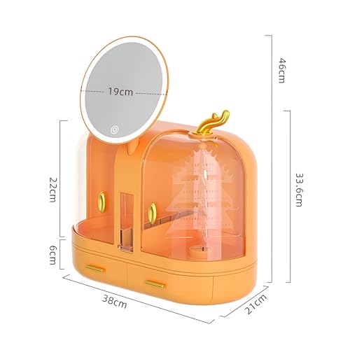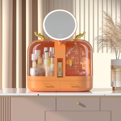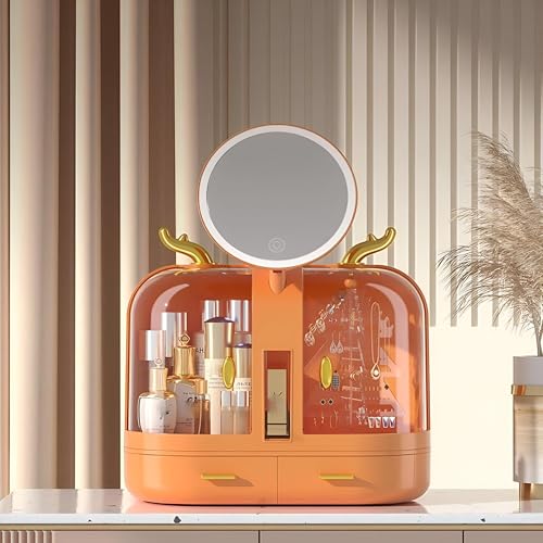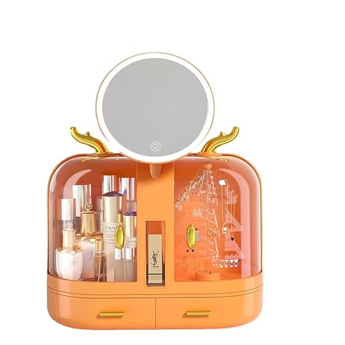Generic - Bathroom & Bedroom Organizer - Compact Storage and Display Solutions for Cosmetics, Features LED Light Mirror and Touchscreen Control in Vibrant Orange