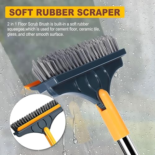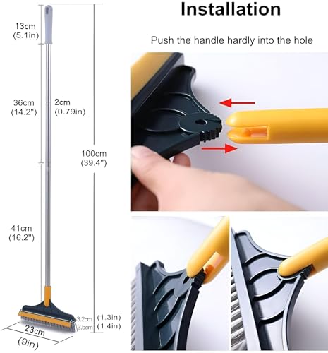 - 2 -in -1 floors brush with a mop: The bathroom cleaning brush comes with a 2 -in 1 function, which is a floors cleaning brush and rubber scraping. Solid hairs are used to brush the bath