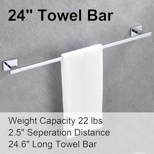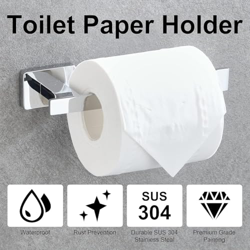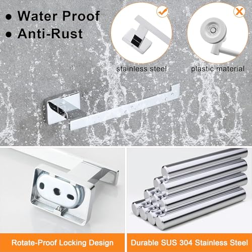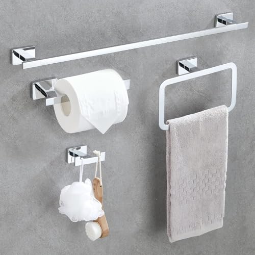 - مجموعة معدات الحمام من الستانلس ستيل SUS304 المقاوم للصدا، تتضمن قضيب لحمل فوطة اليد وحامل ورق التواليت وحلقة للفوط وخطاف للروب، اكسسوارات حمام تعلق على الحائط - 4 قطع، كروم