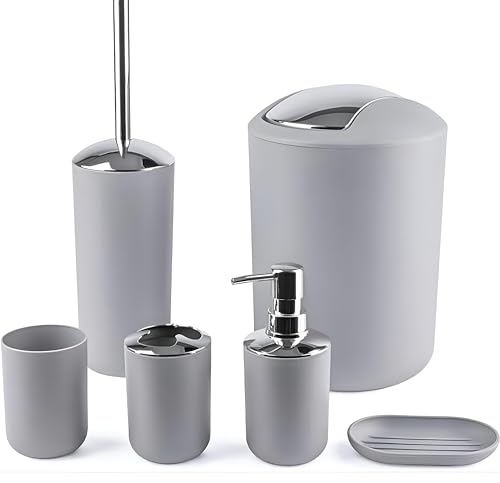 - This high-quality 6-piece bathroom set offers an organized and stylish solution for your bathroom, featuring durable materials and a cohesive design to enhance your space.