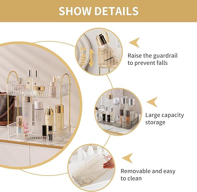 Generic - منظم للحمام والمكياج والمطبخ والتخزين من طبقتين، رف لمستحضرات العناية بالبشرة، حامل عطور لصينية الزينة، (شفاف أبيض)
