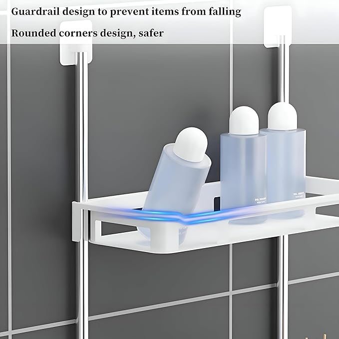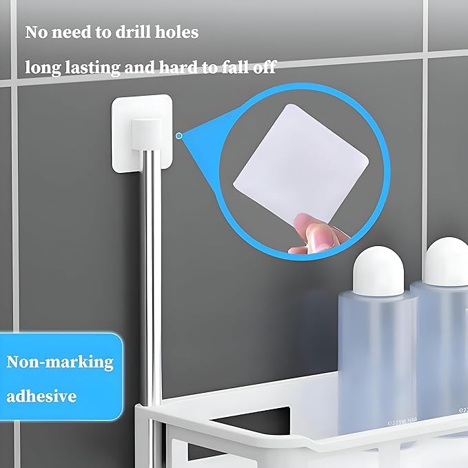 - 3-Tier Storage: Maximizes vertical bathroom space. Easy Setup: Free-standing or Adhesive mounting options. Durable Build: Anti-rust poles & strong plastic trays. Quick Drying: Designed for excellent water drainage. Dimensions: 88 ext{ cm} imes 30 ext{ cm}. Multi-use: Ideal for all bath essentials.
