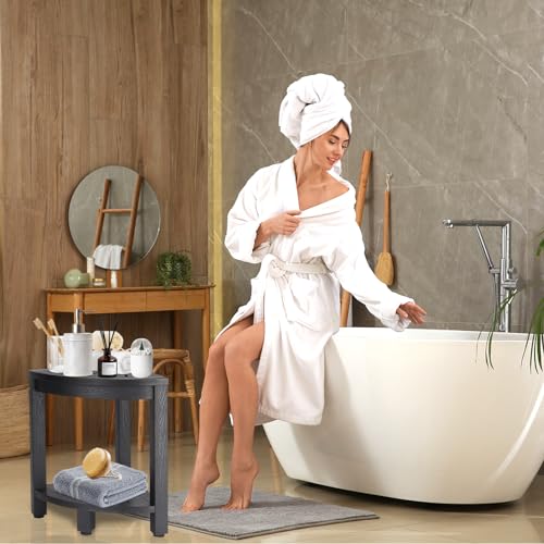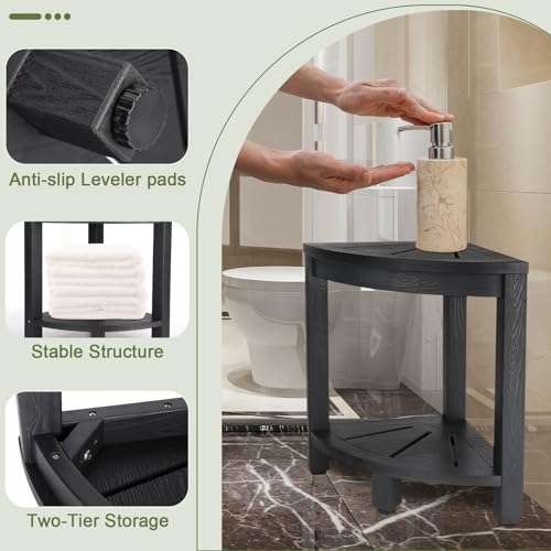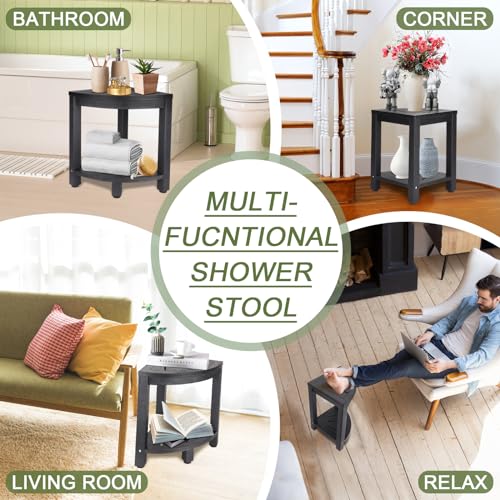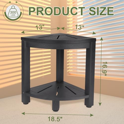 RayLove - كرسي حمام، مقعد زاوية على شكل مروحة من طبقتين مع رف ووسادة مضادة للانزلاق، كرسي حمام محمول مقاوم للماء (اسود)