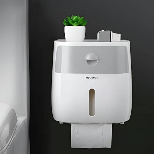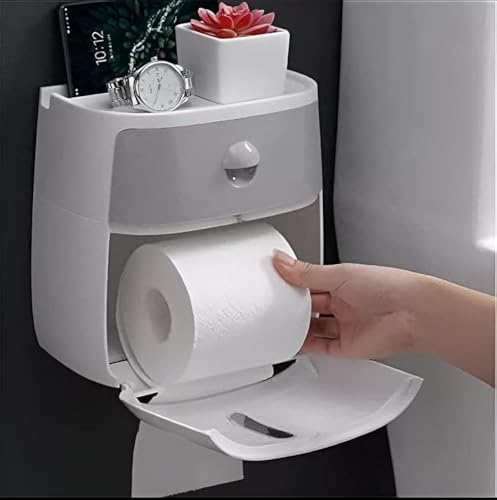 Generic - رف تخزين للحمام مع درج وحامل ورق المرحاض، تصميم عصري مقاوم للماء باللونين الابيض والرمادي