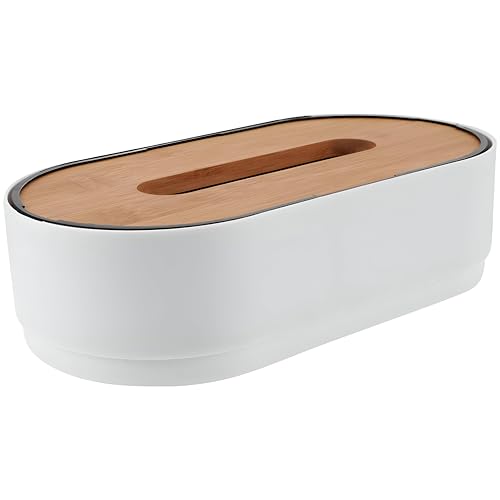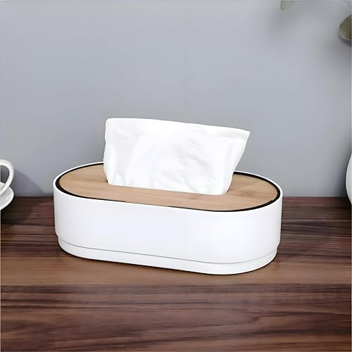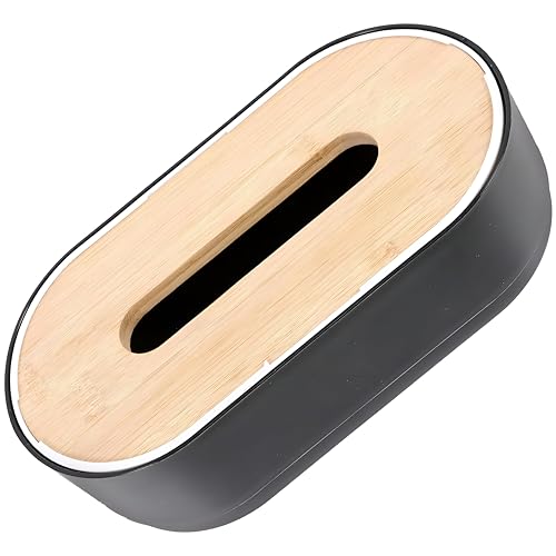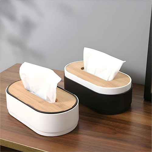 Generic - Bathroom Tissue Box - Elegant Oval Design with Black and White Finish, Wooden Cover for a Sophisticated Decor for Homes and Restaurants