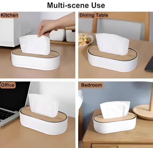 - Equipped with an elegant wooden lid, this tissue box not only offers easy access and convenient refilling but also enhances the aesthetic appeal by adding a rustic, charming touch to your decor, making it an ideal accent for any table or countertop.