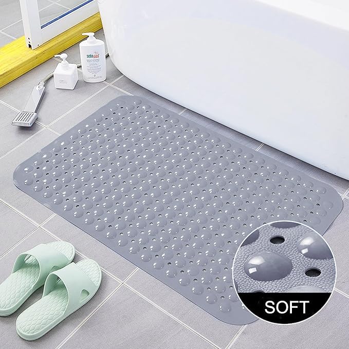 Generic - Bathtub and Shower Mats, 28 x 15 Inch Non-Slip Bath Mat, Machine Washable Bath Tub Mat with Suction Cups & Drain Holes for Bathroom, Beige (Gray)