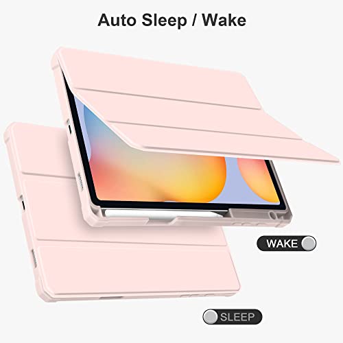 Batianda - Batianda Hybrid Case for Samsung Galaxy Tab S6 Lite 10.4 inch 2022/2020 Model (SM-P610/P613/P615/P619) with S Pen Holder Shockproof Cover with Clear Back Shell TPU Bumper Auto Sleep/Wake, Pink