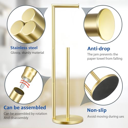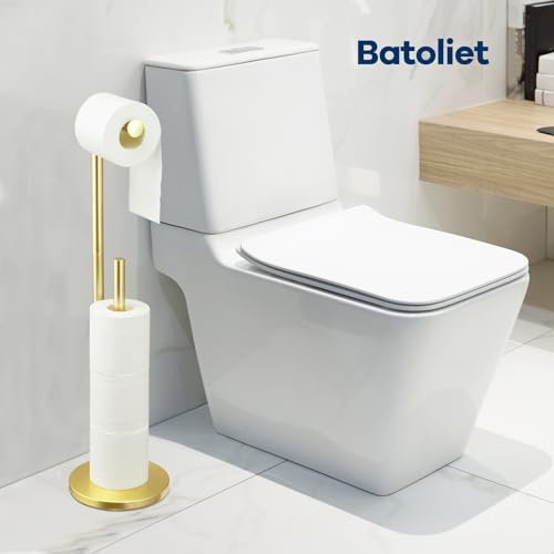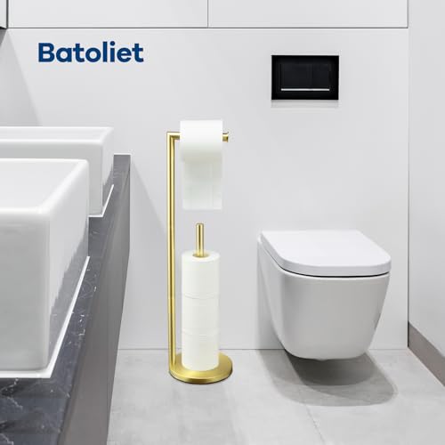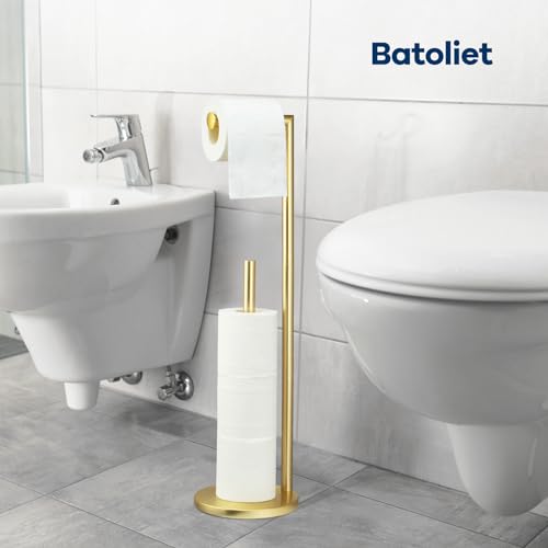 Batoliet - حامل ورق التواليت قائم بذاته من باتوليت، حامل مناديل تواليت مستقل لـ 4 لفات، حامل ورق تواليت ذهبي للحمام مع مساحة تخزين