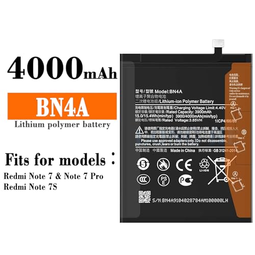 Generic - بطارية ليثيوم ايون بوليمر محمولة بديلة متوافقة مع شاومي ريدمي نوت 7 نوت 7 برو M1901F7C بطارية موبايل 4000 مللي امبير في الساعة للشحن السريع موديل BN4A