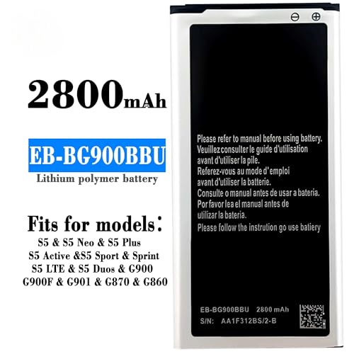 Generic - Battery EB-BG900BBU/ EB-BG900BBE For Samsung S5/ S5 DUOS 2800mAh 15.0Wh Compatible With S5 Neo/ S5 Plus/ S5 Active/ S5 Sport/sprint S5 LTE/G900/ G900F/ G901/ G870 Global Batteries Bateria