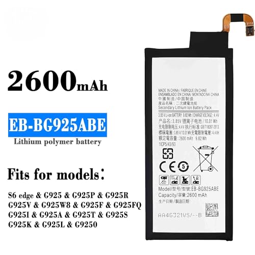 Generic - Battery EB-BG925ABE For Samsung Galaxy S6 Edge Replacement Battery 2600mAh, 3.88V Compatible With G925/ G925P/ G925R/ G925V/ G925W8/ G925F/ G925FQ/ G925I/ G925A/ G925T/ G925S/ G925K/ G925L/ G9250