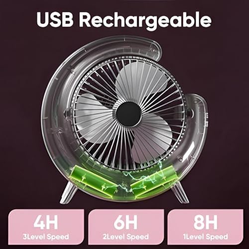 - Equipped with a rechargeable battery that provides up to 4 hours of operation, this mini fan ensures that you can enjoy its cooling benefits without being restricted by power cords. This feature makes it extremely versatile, allowing you to use it in places where power outlets may not be available. Whether you are on a picnic, at the beach, or just lounging at home, you'll stay comfortable no matter where you are.
