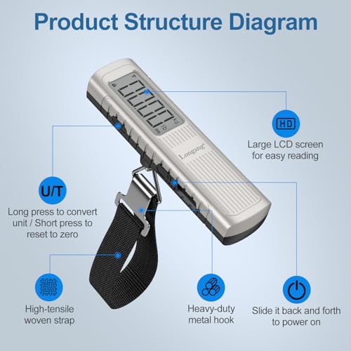 - Multi-function - Precise measurement, unit conversion, overload warning, tare function, weight Auto-lock, Auto-off. Perfect for weighing suitcases, backpacks, fishing gear, postal packages and other weighing needs at home or on the go.