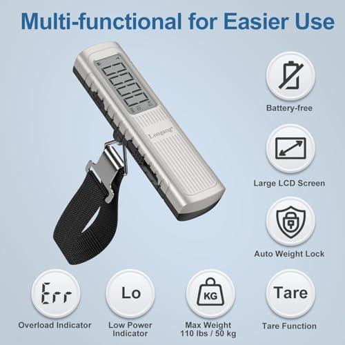 Longang - Battery-Free Digital Luggage Scale, 110lbs/50kg Portable Handheld Hanging Scale for Luggages, Suitcases, Backpacks & Bags, Easy Weighing for Travel, No Need Batteries (Champagne)