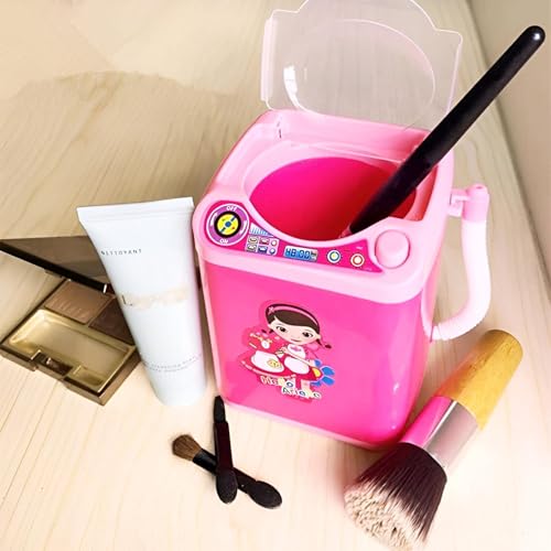 - The small pink makeup brush cleaner is an automatic plastic washing machine designed for deep cleaning of beauty tools. It features an electronic sponge and powder sponge for effective cleaning, perfect for girls and women.