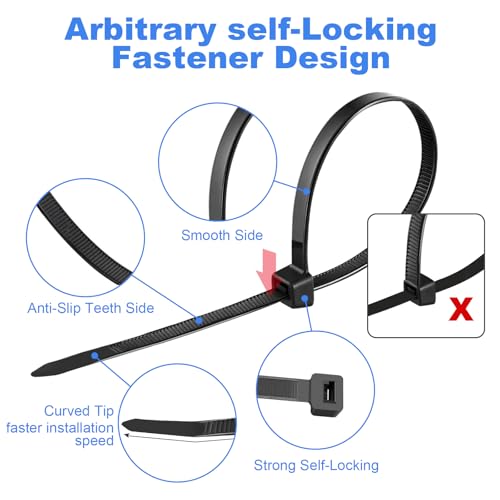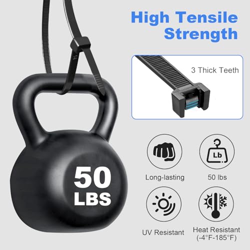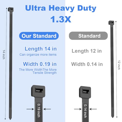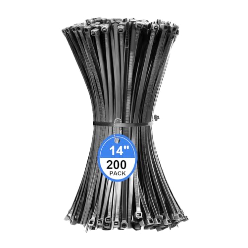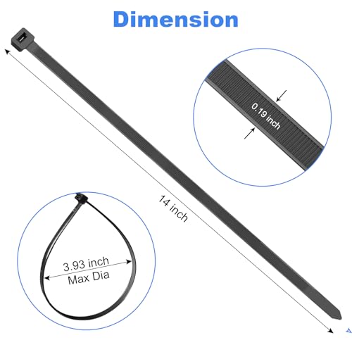 Bavlesfuire - اربطة كيبلات بلاستيكية شديدة التحمل بقوة شد 50 باوند مقاس 14 انش من بافليسفوار، اربطة كيبلات سوداء ذاتية الغلق من النايلون الاسود للاستخدام الداخلي والخارجي