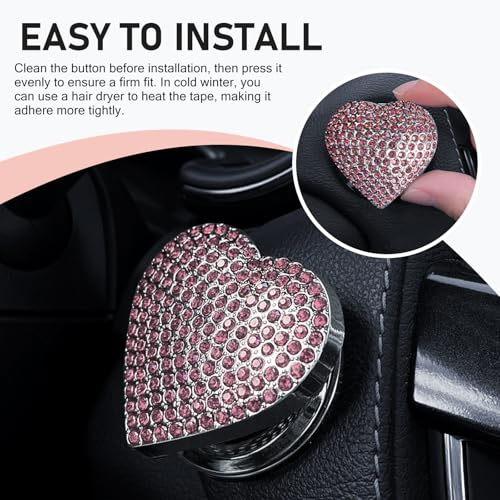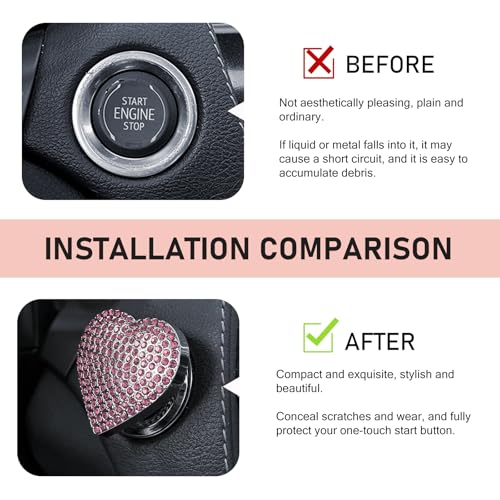 - Bling Design: This bling crystal car engine start button cover sticker fits most car ignitions. Its cute heart shape with sparkling rhinestones adds a unique, dazzling touch to your car interior, making it stand out with a fashionable look.