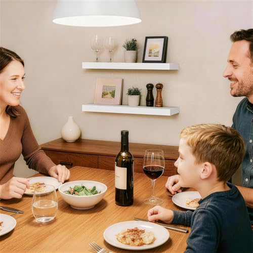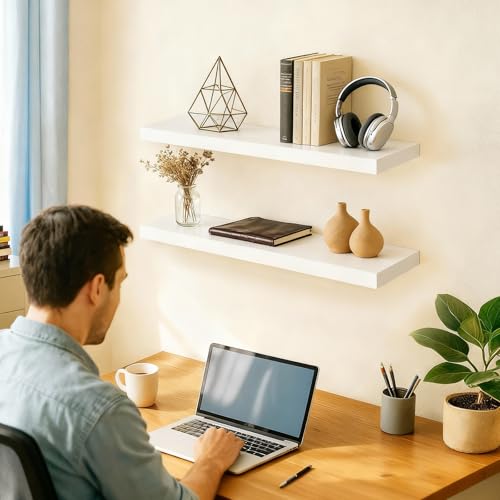 BAYKA - BAYKA Floating Shelves, 22.5" Wall Mounted Wood Shelves for Bathroom, Bedroom, Living Room, Kitchen, Hanging Shelf for Books/Storage/Decor (White,Set of 2)