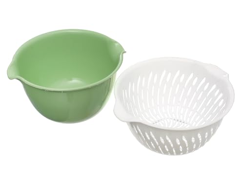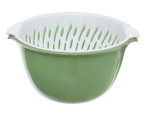 - سلة تصريف مزدوجة: تتكون هذه المصفاة من بولة مع فوهة ومصفاة/صفاية داخل الوعاء لغسل الخضروات أو الفاكهة بسهولة - سهلة التصريف والعمل بها.