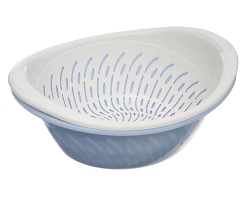 BB. - بولة بلاستيك عميقة مع صفاية من بي بي (34 × 27.5 × 13 سم)، لون أزرق سماوي وأبيض