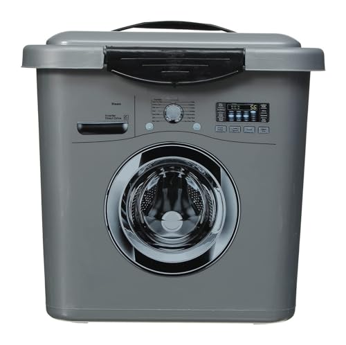 BB - BB Plastic Rectangular Laundry Detergent Storage Box with Clip Lid and Handle, 29 cm x 19 cm x 28 cm Size, Grey/Black