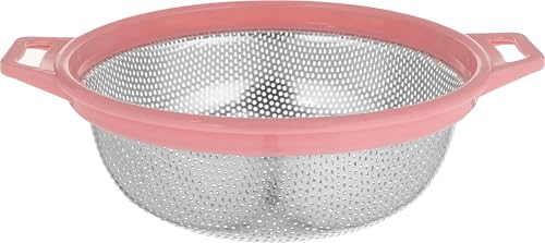 BB - مصفاة دائرية من الفولاذ المقاوم للصدأ بإطار ومقبض من البلاستيك من بي بي، مقاس 24 سم، لون وردي