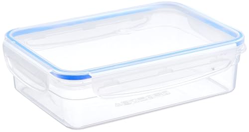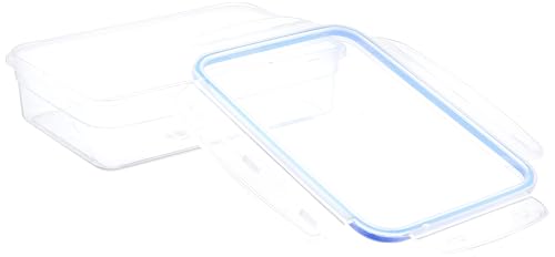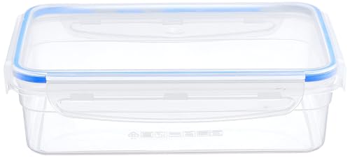 BB - BB Wide Rectangular Plastic Refrigerator Box with Clip-On Lid, 1400 ml Capacity, Clear/Blue