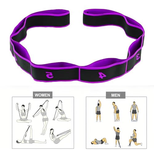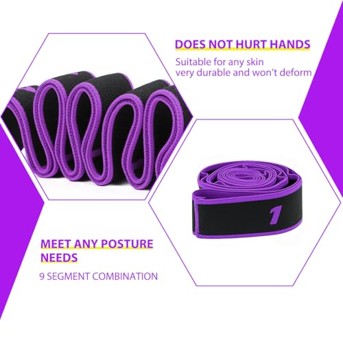 BDEPSTR - Elastic Yoga Strap with 9 Ends - Segmented Resistance Band for Yoga, Pilates, Dance, Rehabilitation