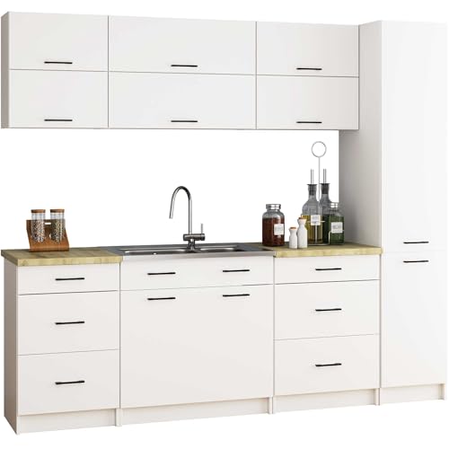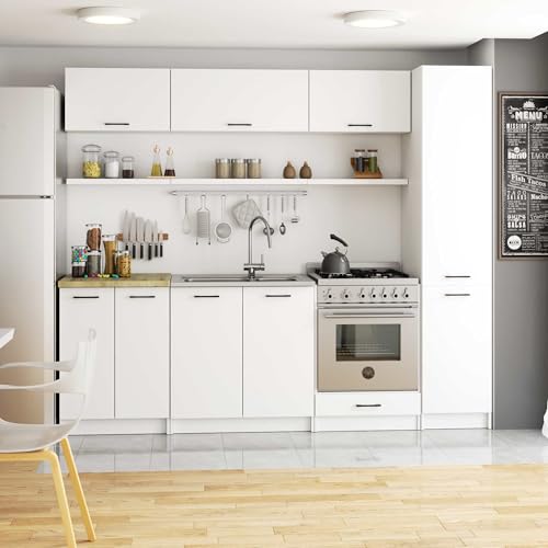 BDW - BDW - Kitchen Storage Cabinet - Narrow Kitchen Cabinet - Cupboard 40 cm Wide, 205 cm High, 57 cm Deep - Spacious Tall Cabinet for Supplies, Kitchen Utensils and More - Kitchen Cabinet White
