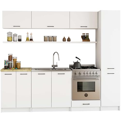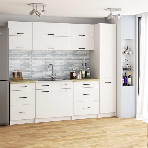 - VERSATILE USE The pantry cabinet provides generous storage space for supplies, kitchen utensils and more. It is great for organising your kitchen and keeps all your essentials tidy and within easy reach. Ideal for efficient kitchen organisation.