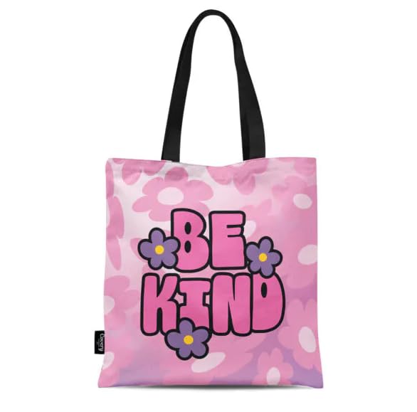 Be Kind Floral Tote Bag, Pink Canvas with Black Handles, Inspirational Design