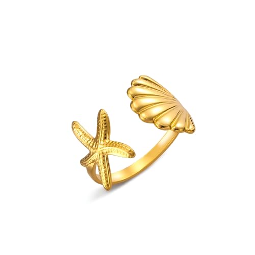 Generic - Beachy Jewelry Piece - Beautiful Adjustable Summer Ring with Starfish and Shell Motif for Women, Perfect for Ocean Adventures and Special Gift Moments