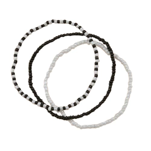 Generic - طقم اساور الكاحل المطرزة بتصميم لؤلؤ اسود وابيض، 3 قطع
