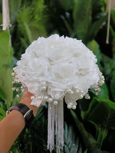 - This crystal beaded hair scrunchie combines luxury and durability, featuring an intricate arrangement of clear and champagne-colored crystals that reflect light beautifully, making it the perfect accessory for special occasions like weddings or formal events. Its secure elastic construction ensures a comfortable yet firm fit, suitable for various hairstyles, and the approximately 7 cm diameter provides maximum sparkle with densely packed beads, elevating your look effortlessly.