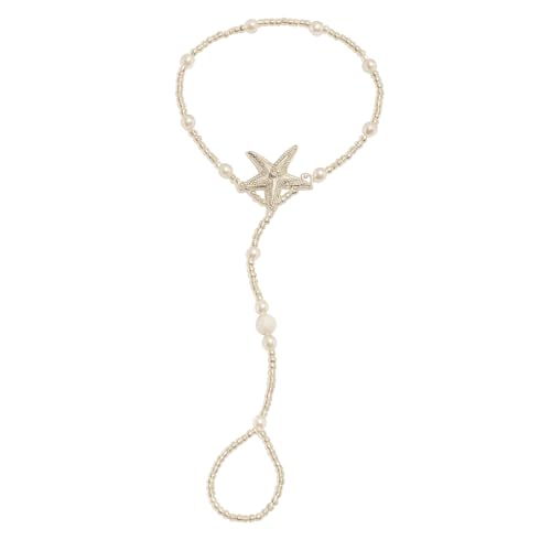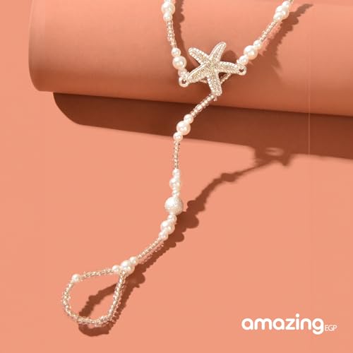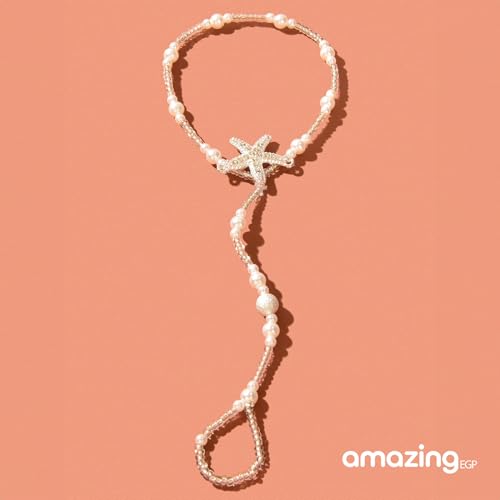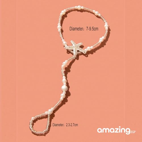 THE PACK - سوار كاحل مطرز على شكل نجم البحر، خلخال شاطئ لؤلؤي ابيض، قابل للتعديل 18-35 سم، مقاوم للماء